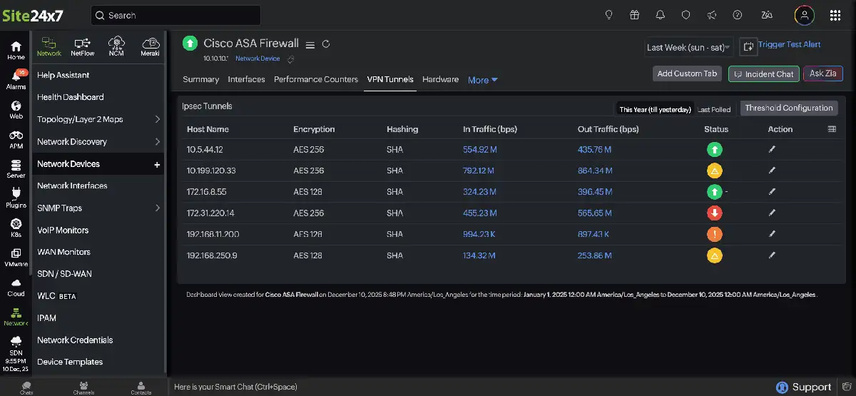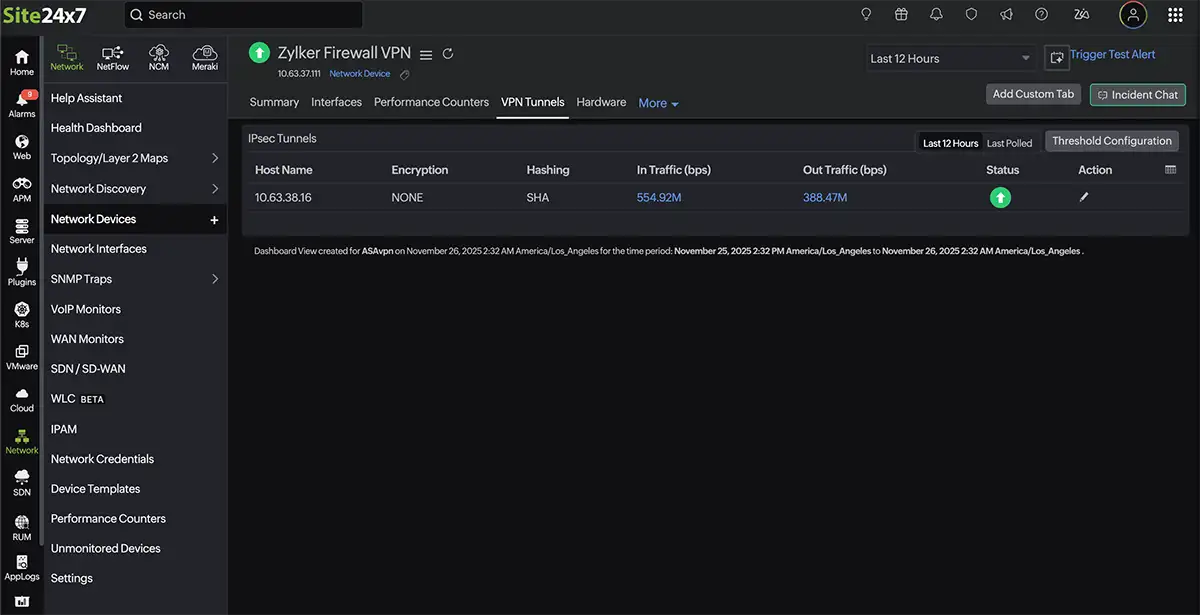 In multi-vendor environments, integrating VPN data with firewall monitoring insights provides additional clarity by correlating tunnel behavior with device health and interface statistics. Bringing security checks and performance visibility together enables faster, data-driven remediation rather than relying on manual log inspection or assumption.